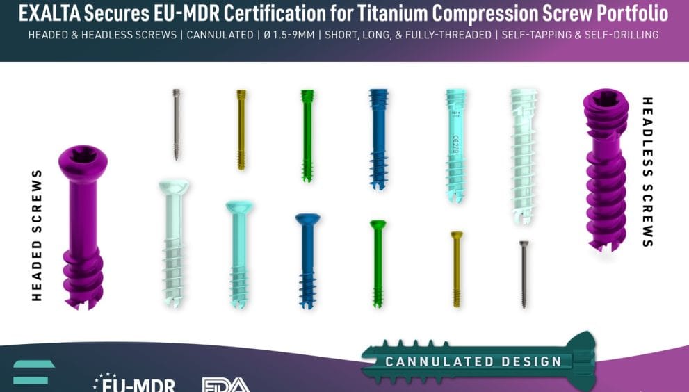 EXALTA Secures EU-MDR Certification for Titanium Compression Screws, Expanding Access to Advanced Trauma Solutions